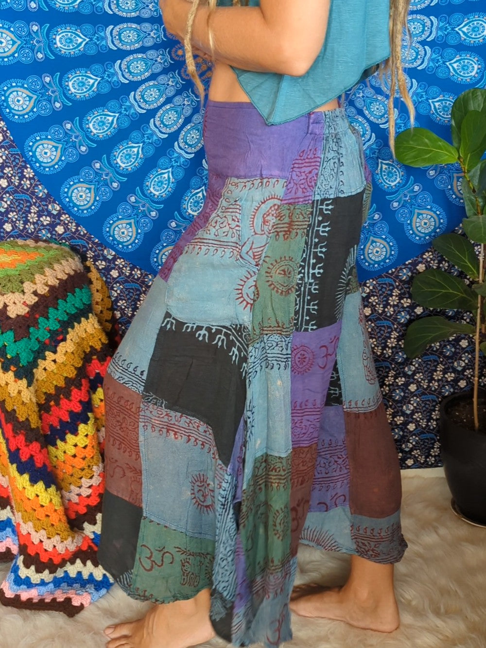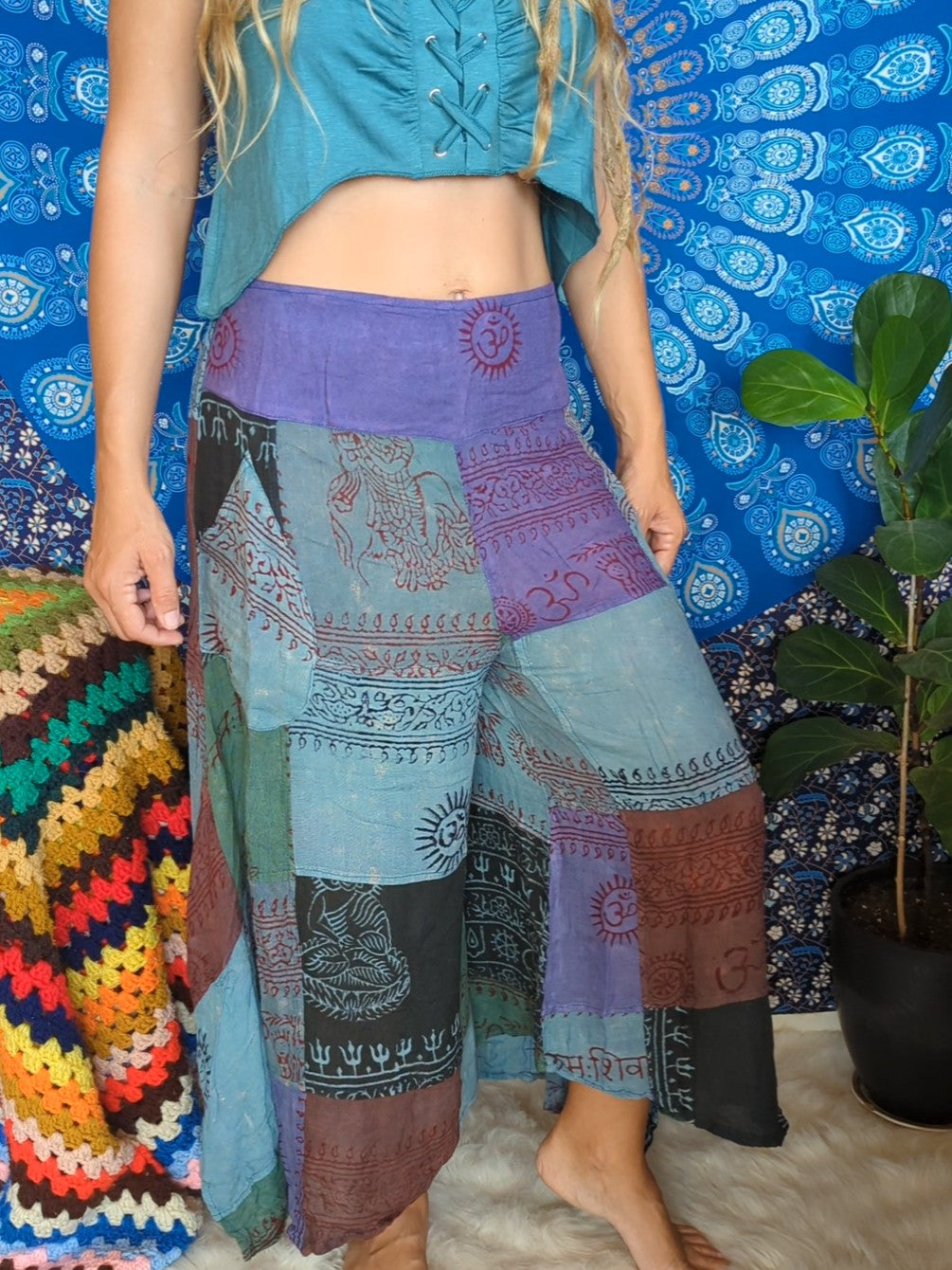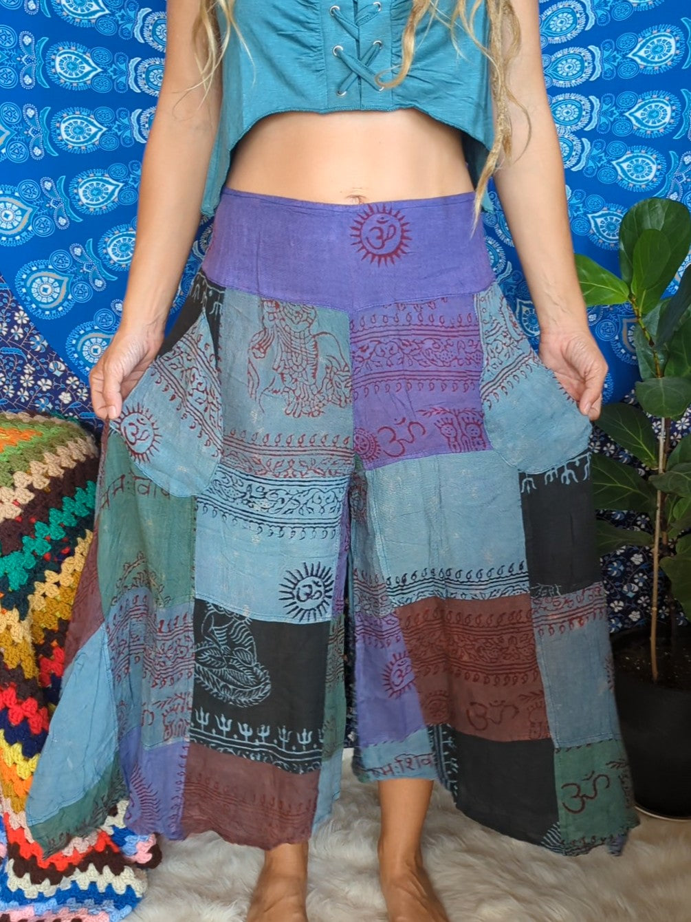 Flowy patchwork gauchos with pockets
